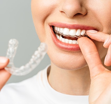 Thin, transparent plastic trays used to straighten teeth, offering a discreet alternative to traditional braces.